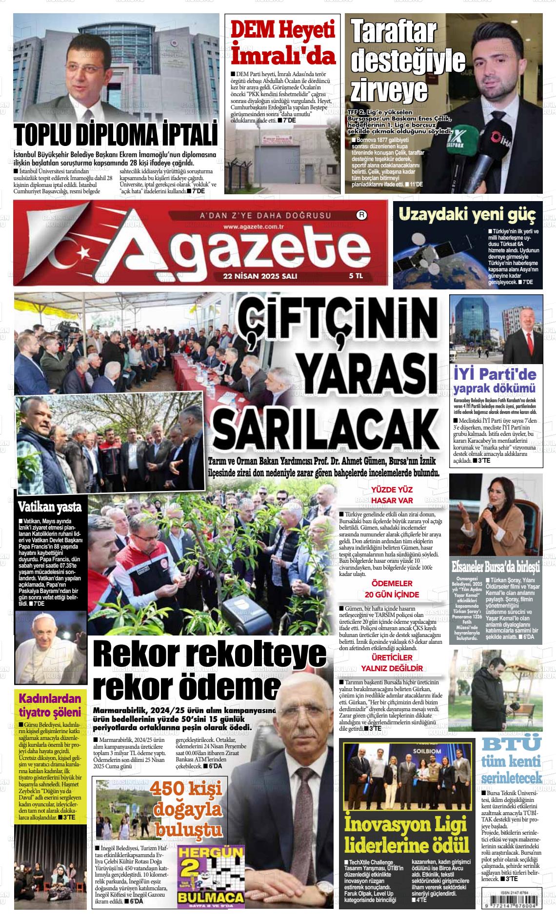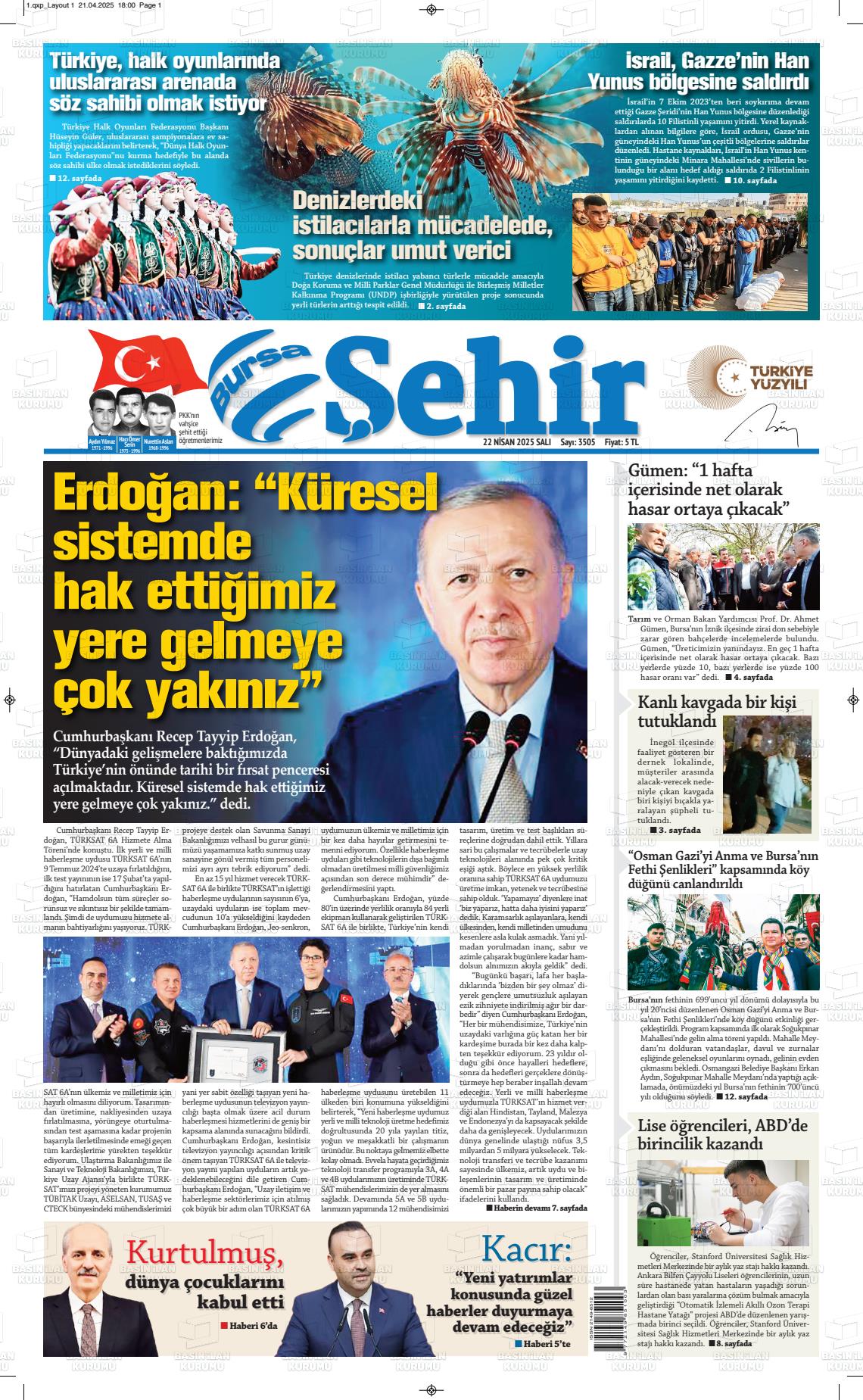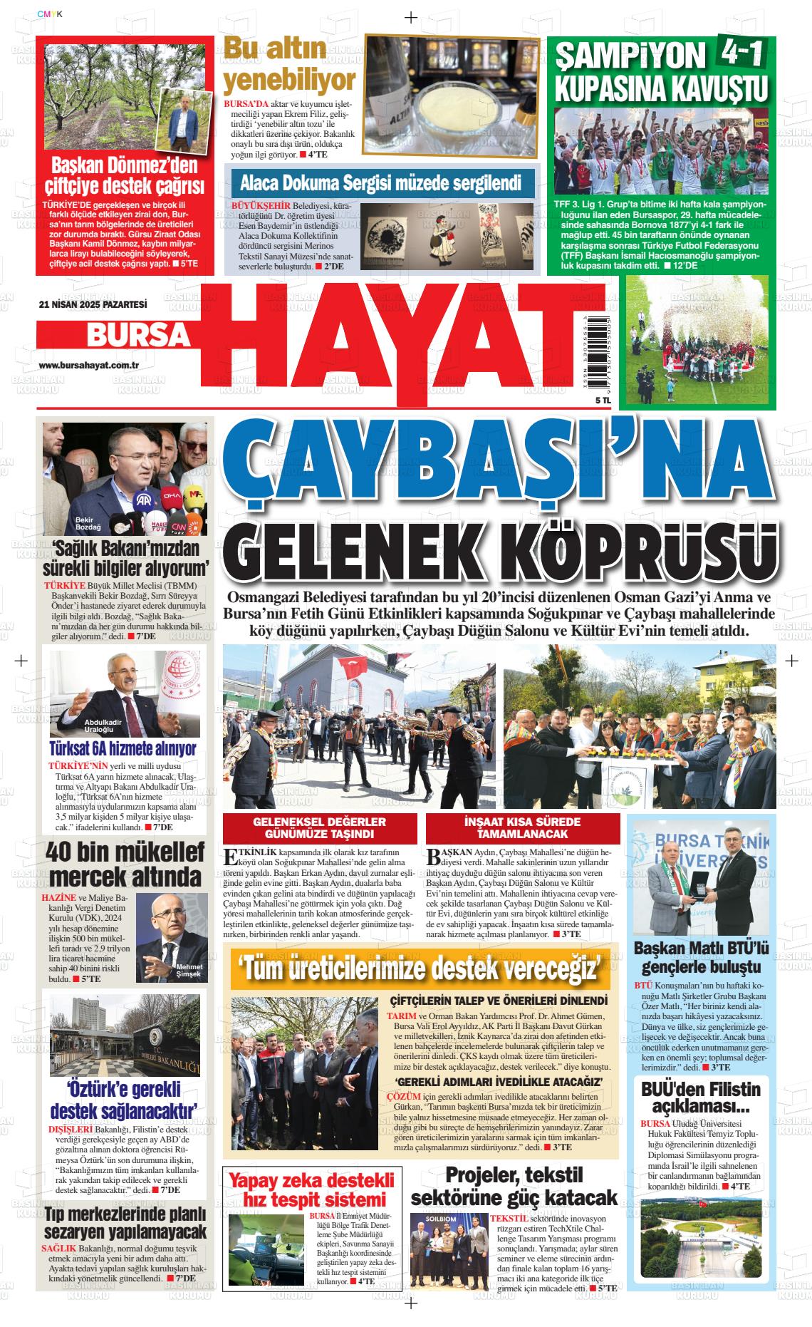 Bursa Yerel Gazeteleri 21 Ocak 2025, Salı Günü Manşeti